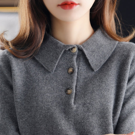 Kaschmirpullover Strickpullover Herbst Winter Revers Basisshirt reine Wolle Damen lockeres Top