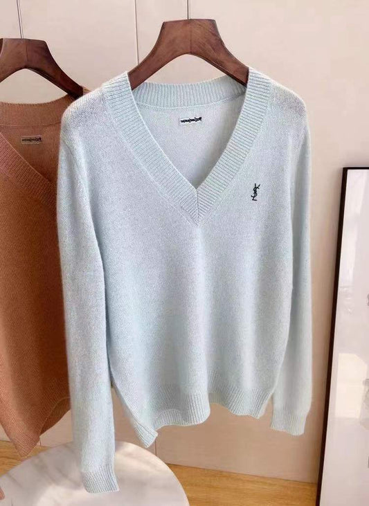 Frühling und Herbst gestrickte Stickerei Pullover Rundhals V-Ausschnitt Langarm Luxus