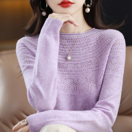 Herbst Winter Neue Nahtlose One-Line Pullover Wolle Runde S Neck UpperBody Hohl