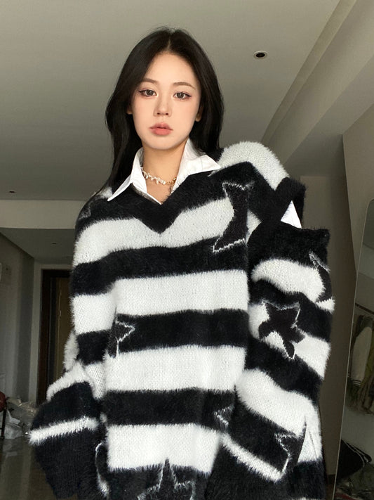 Herbst Winter Neue Gestreifte Oansatz Pullover Beiläufige Gestrickte Gestreifte Kaschmir Weibliche Pullover