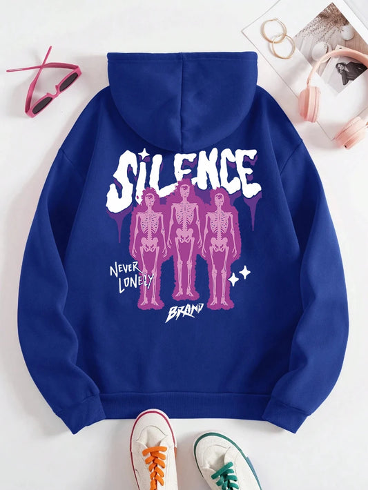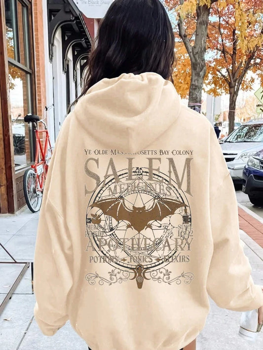 Vintage Bat Graphic Hoodie Women Warm Fleece Pullover
