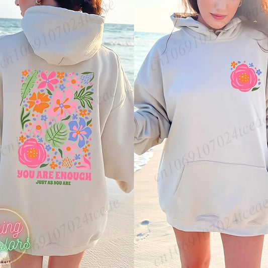 Women’s You Are Enough Flower Hoodie Aesthetic Graphic Sweatshirt