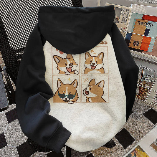 Women's Cute Corgi Collage Hoodie Graphic Print Loose Harajuku Hoodie