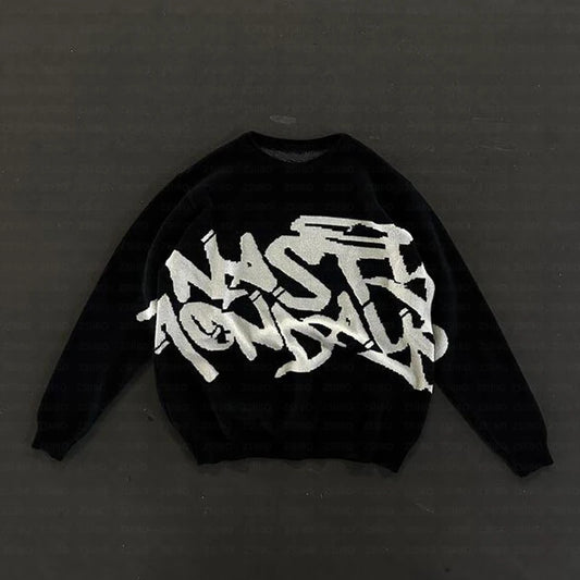 Gothic Punk Harajuku Knitted Sweater Women Retro Wool Pullover