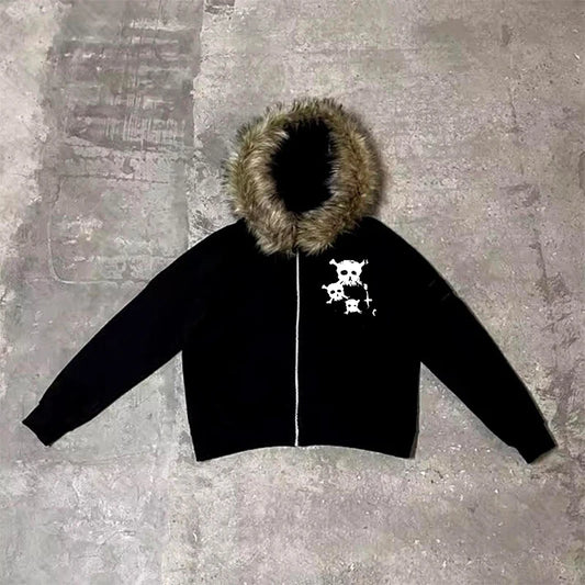 Faux Fur Harajuku Hip-Hop Oversized Zipper Hoodie Punk Goth Jacket