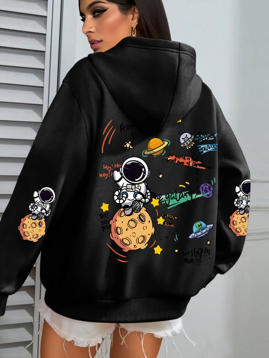 Women’s Galaxy Astronaut Print Hoodie Oversized Warm Fleece