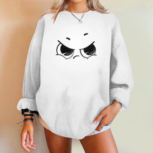 Expression Print Oversized Sweatshirt Casual Pullover Round Neck Long Sleeve