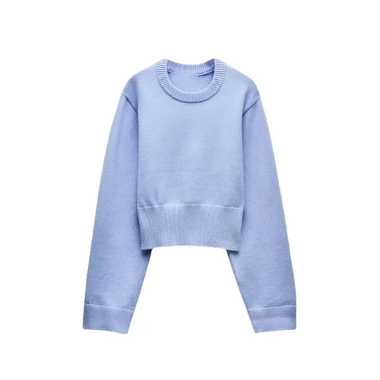 Women's Loose Knit Sweater Round Neck Ribbed Hem Short Cardigan