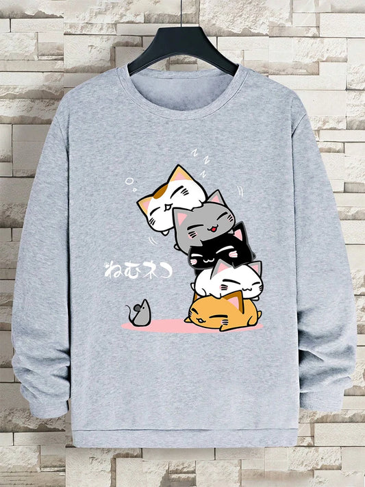 Women's Oversized Cat Print Hoodie Vintage Thick Pullover