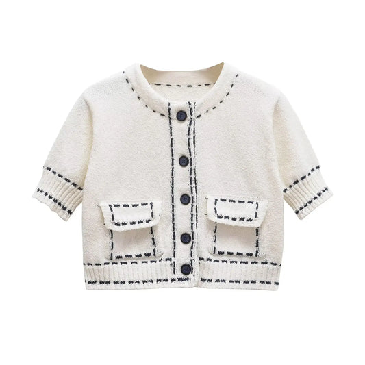 Women's Handmade Knitted Cardigan Short Sleeve Spring Coat