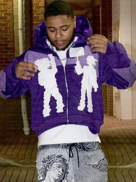 Women's Retro Embroidered Zip Hoodie Harajuku Oversized Jacket