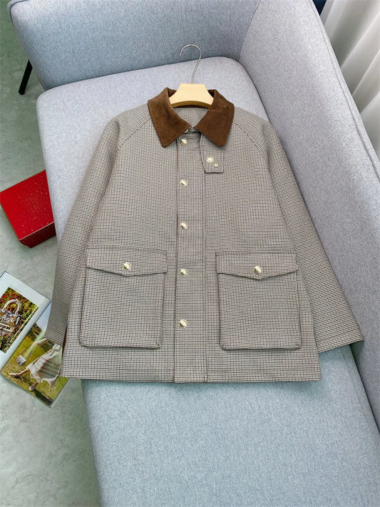 Women's Plaid Lapel Jacket Casual Spring Autumn Versatile Coat