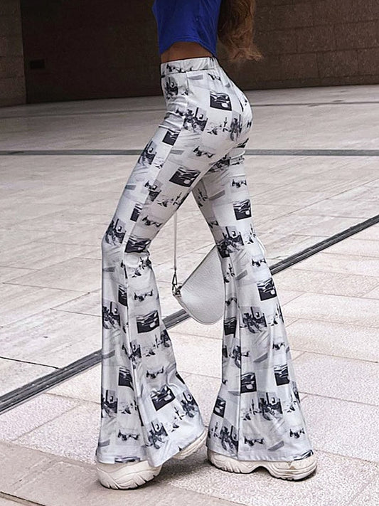 Hosen Y2k Casual Prints Flare für Frauen Kleidung elastische Taille Mode