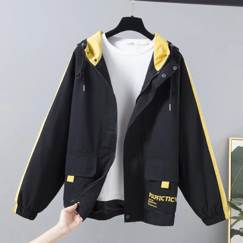 Womens Oversized Corduroy Jacket Hooded Zip Windbreaker Fall Coat