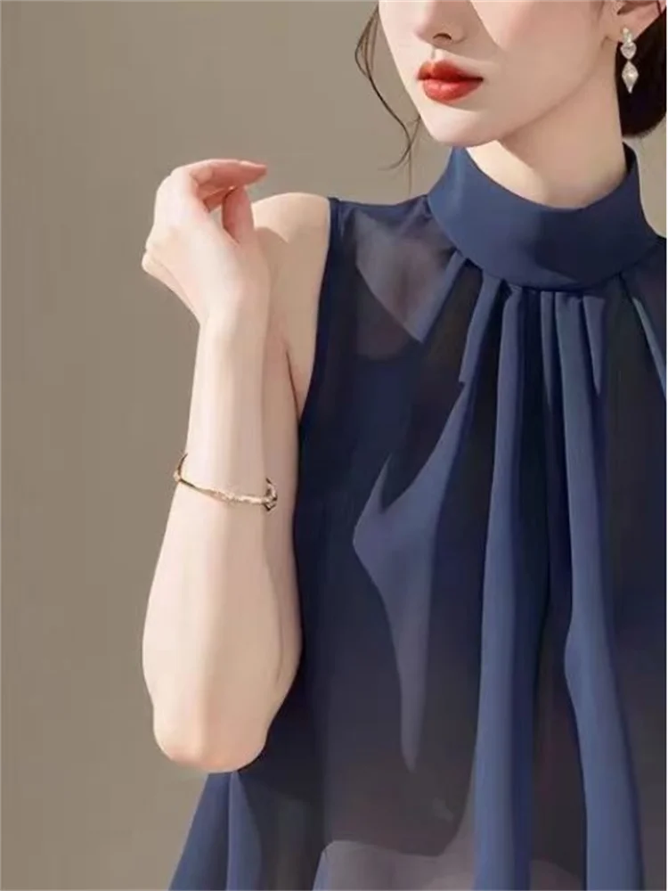 Sleeveless Halter Pleated Blouse – Summer Top for Women