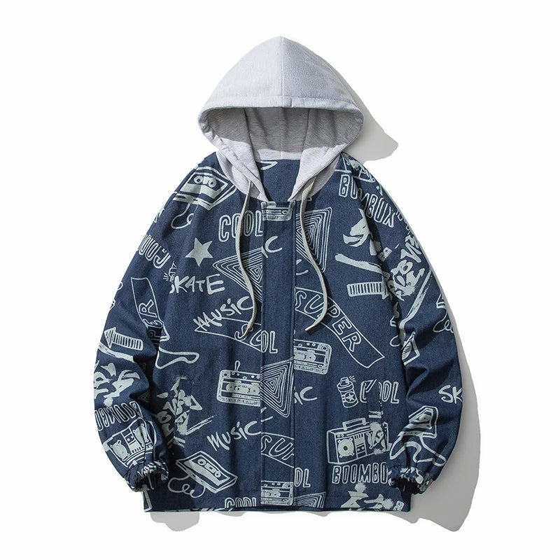 2024 herbst Winter Neue Mit Kapuze Jacke Amerikanischen Retro Mantel Top Gemalt Muster Y2k Lose