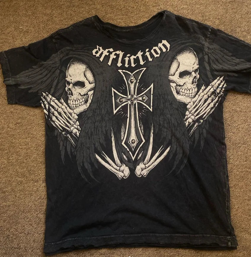 2024 Gothic Angel Skull Print Herren T-Shirt Casual Sommerstil