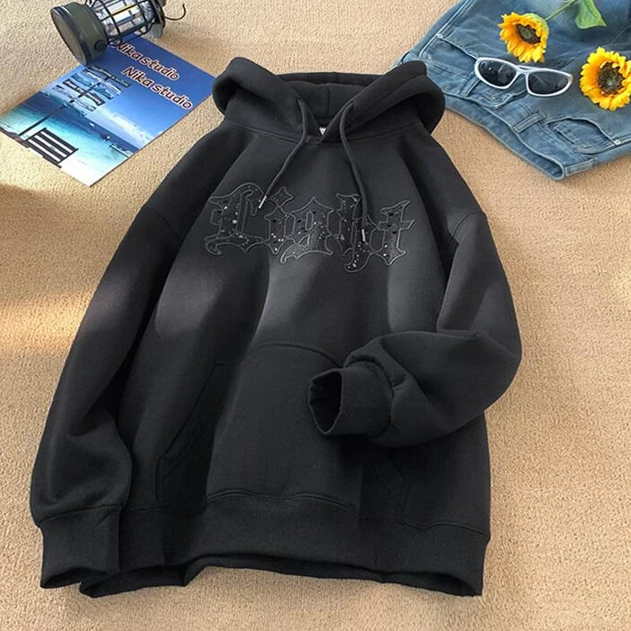 2024 Gothic Street Hoodie Loose Fit Unisex Sweatshirt für Herbst Winter