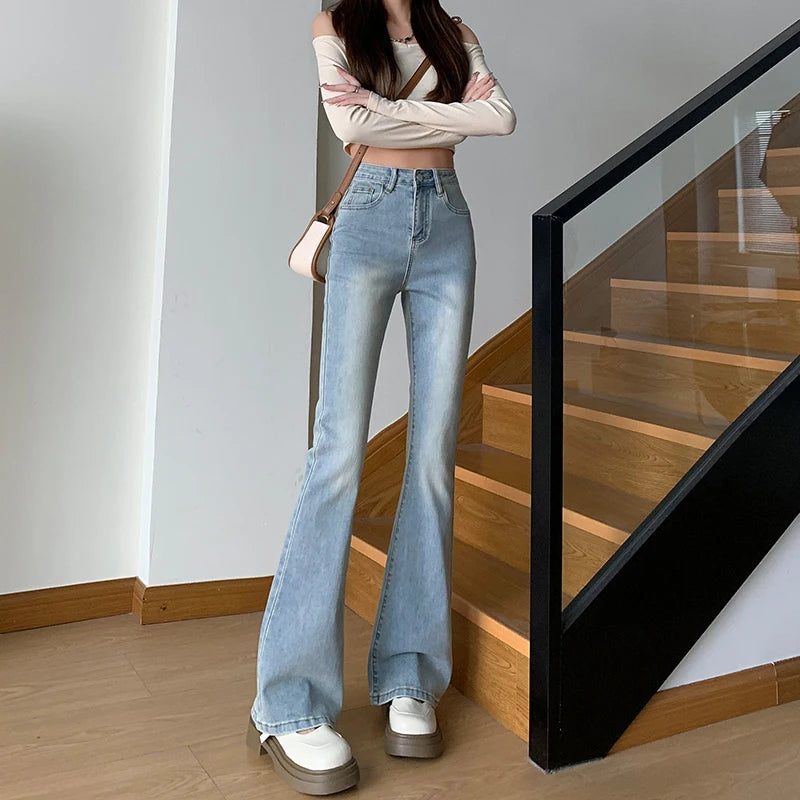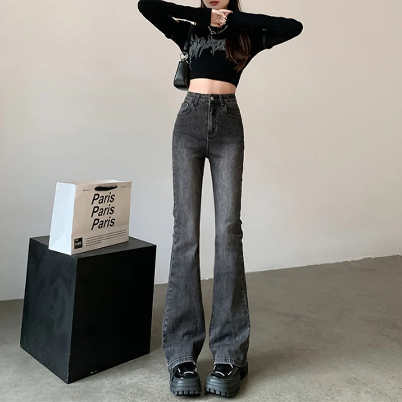 2024 Harajuku High-Waist Micro Flare Jeans Damen Freizeitmode