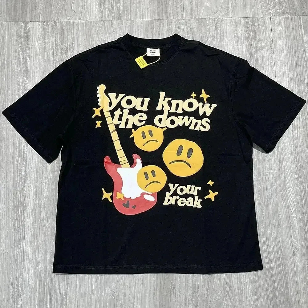 2024 T-Shirt mit Emoji- und Gitarren-Print im Harajuku-Stil