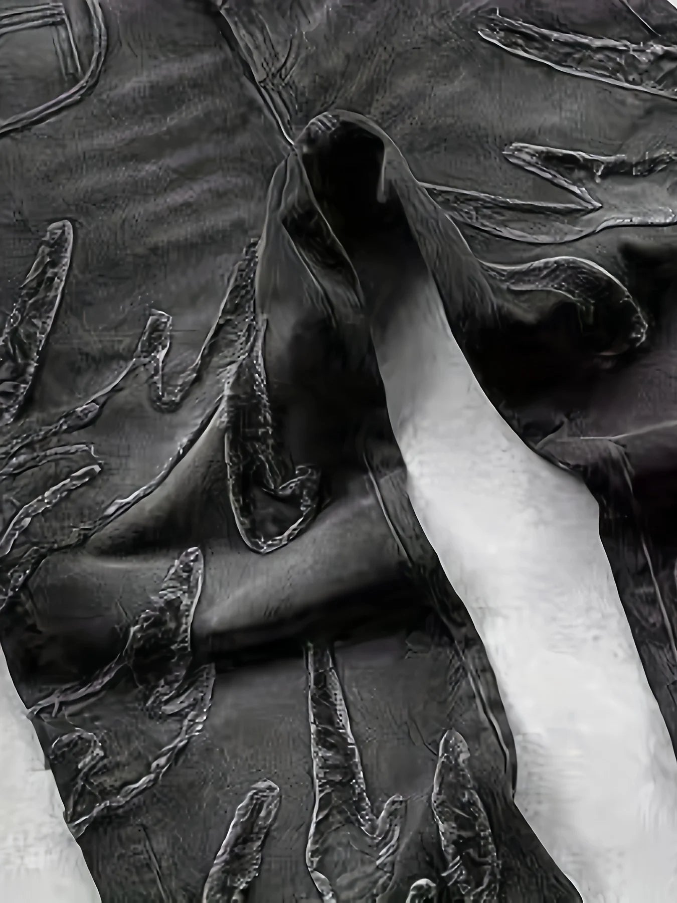 Mens Wide Leg Jeans Flame Embroidered Graffiti Vintage Denim