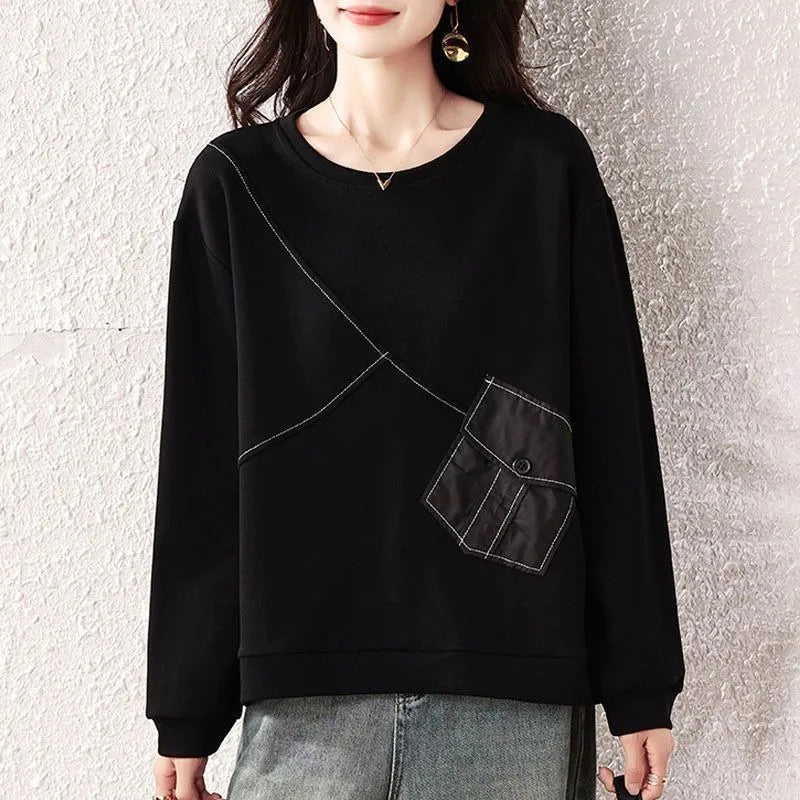 Patchwork Sweatshirt Women Oversized Long Sleeve Casual Pullover