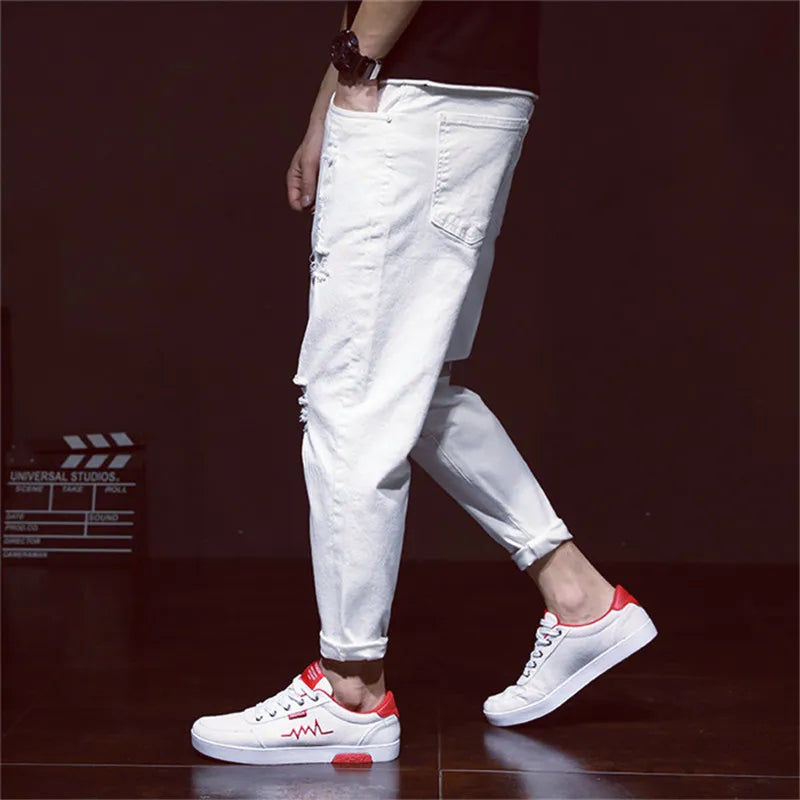 Zerrissene weiße Denim Distressed Herren Hose Cowboy Löcher