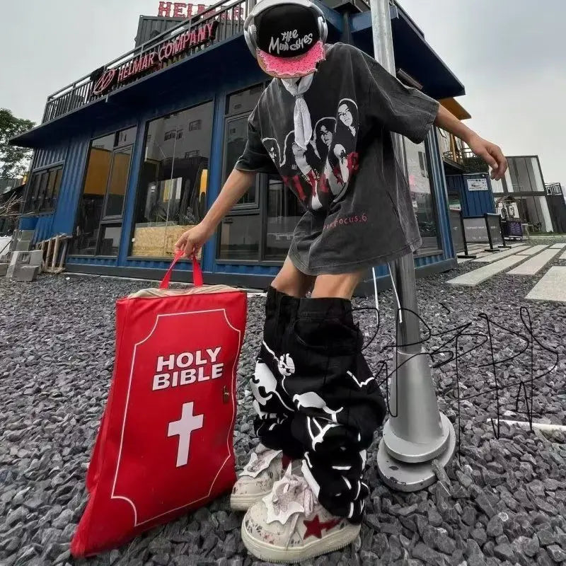 Totenkopf Herren High Street Lockere Hose mit geradem Bein und weitem Bein