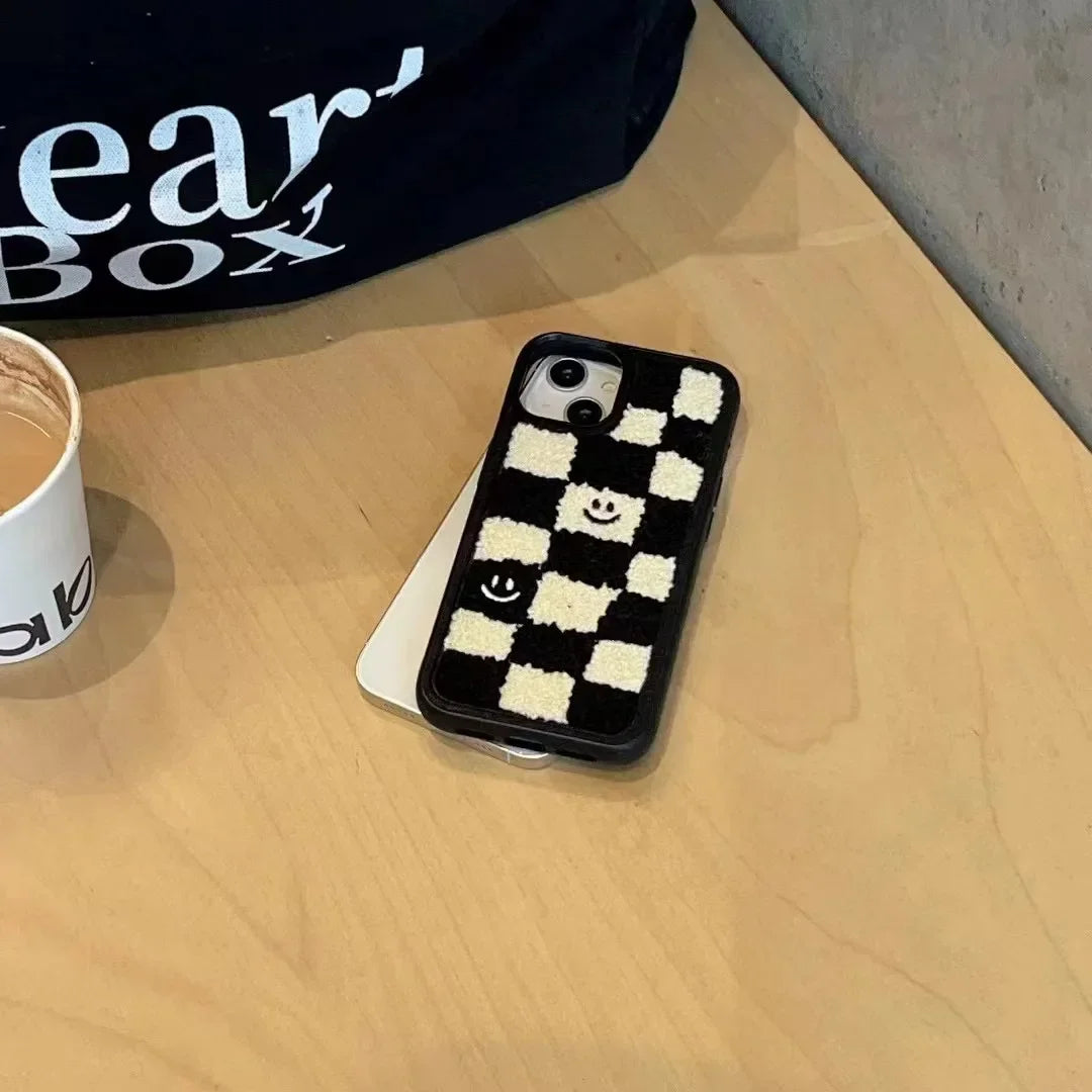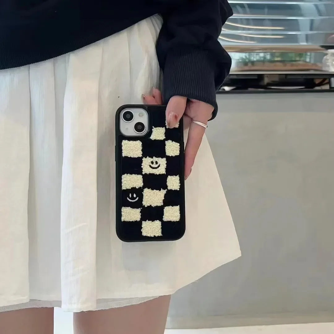 Stil: Korea Winter Schwarz grid lächeln Plüsch Telefon Fall
