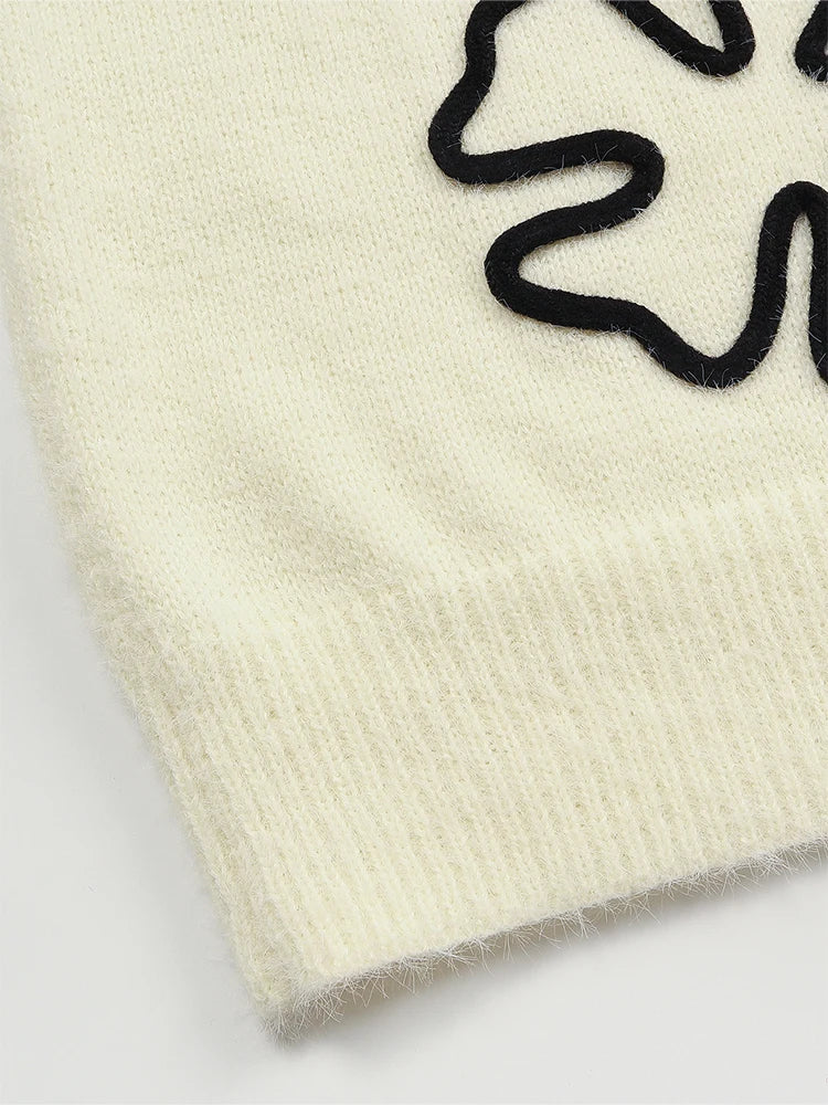 Women's Flower Print Color Block round Neck Casual Sweater Long Sleeve