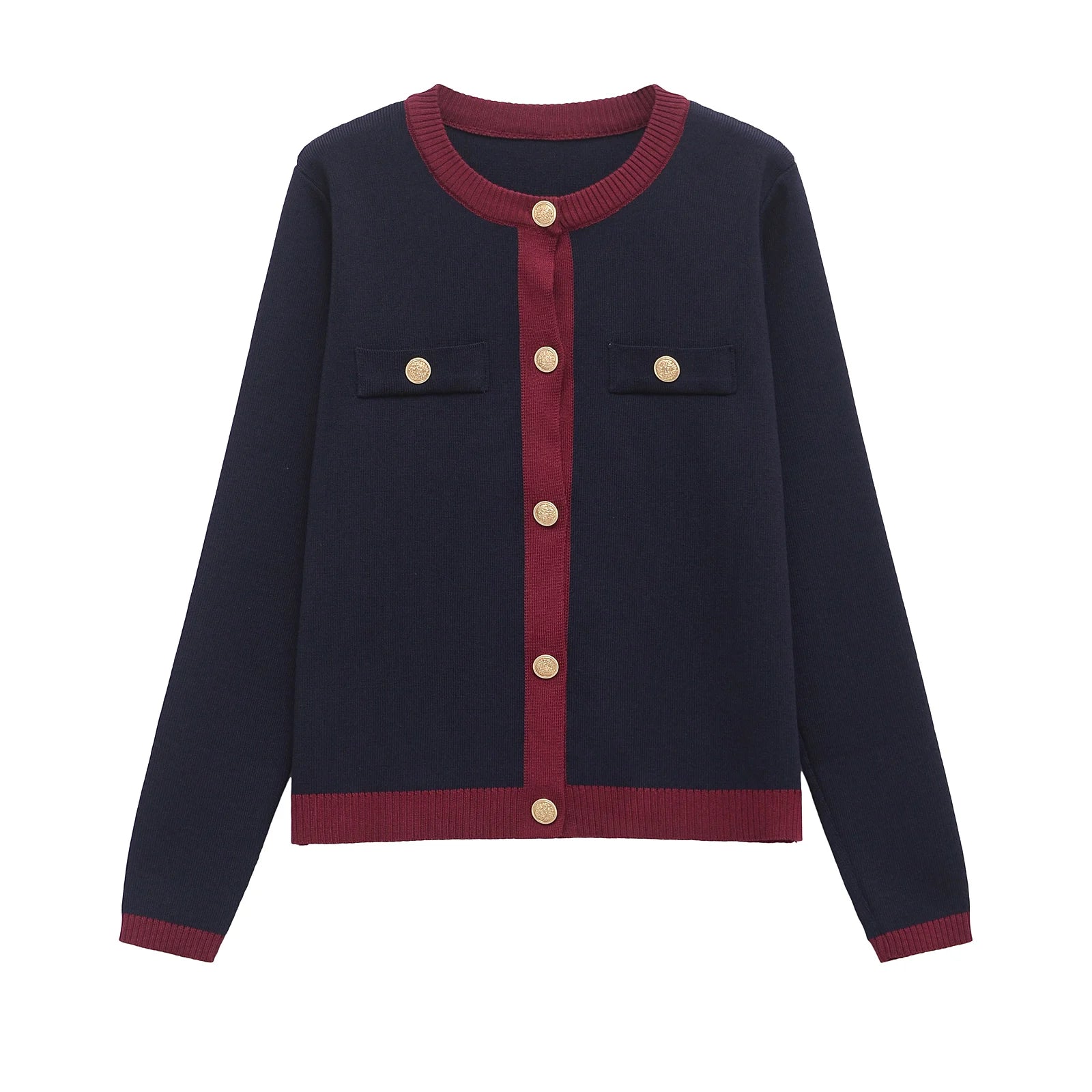 Women's Gold Button Knit Cardigan - Long Sleeve Sweater Coat