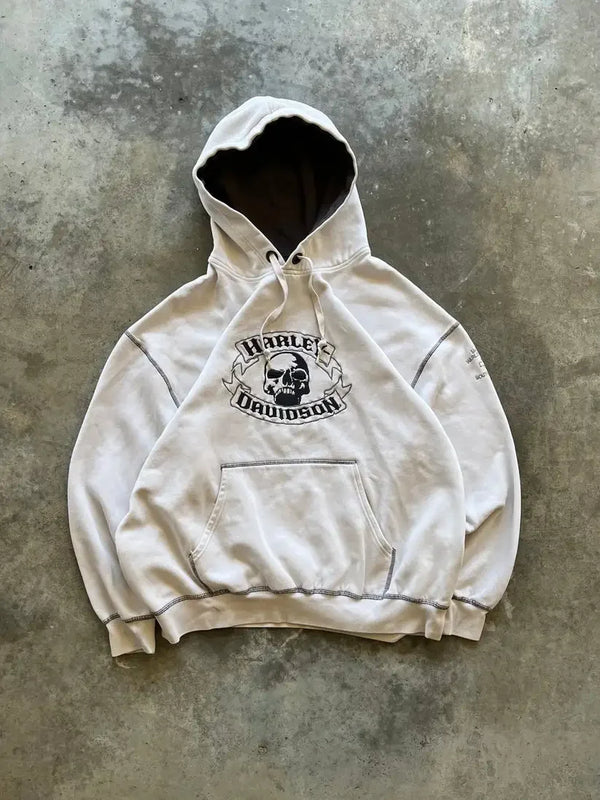 Damenpullover, lässige Kapuzenpullover, bedruckter Buchstabe und Totenkopfkopf, Herbst und Winter
