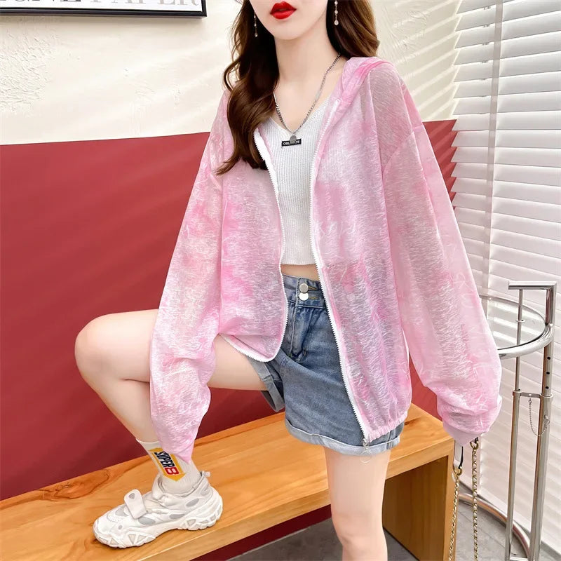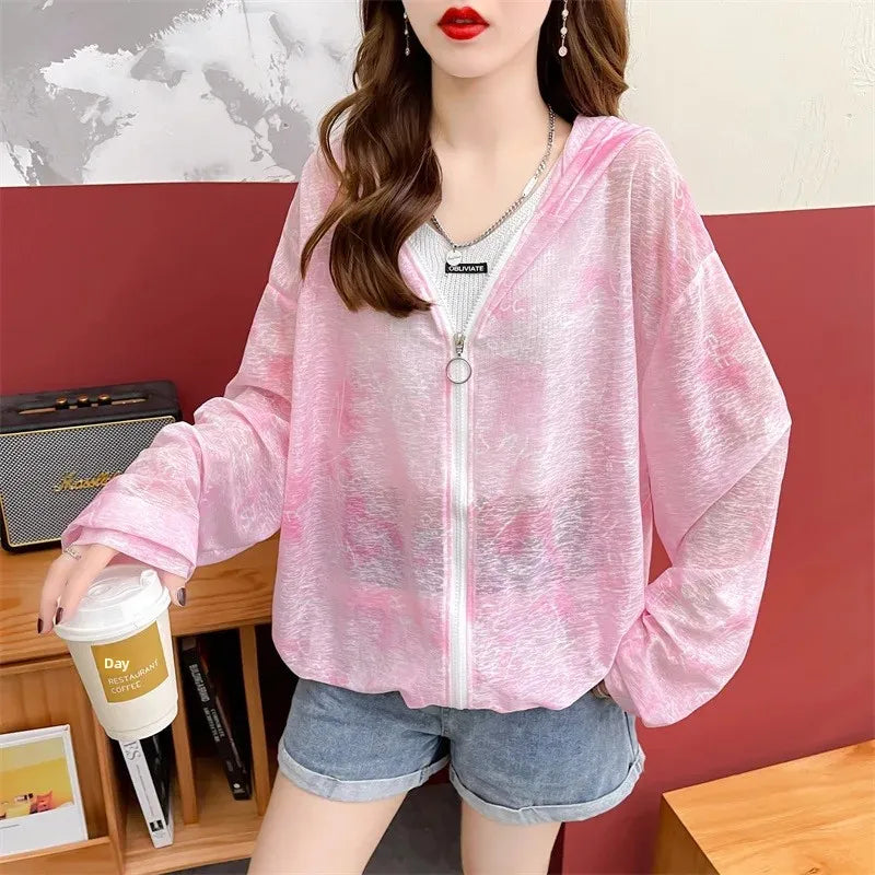 Womens UPF Sun Protection Jacket Blue Hooded Lightweight Cardigan