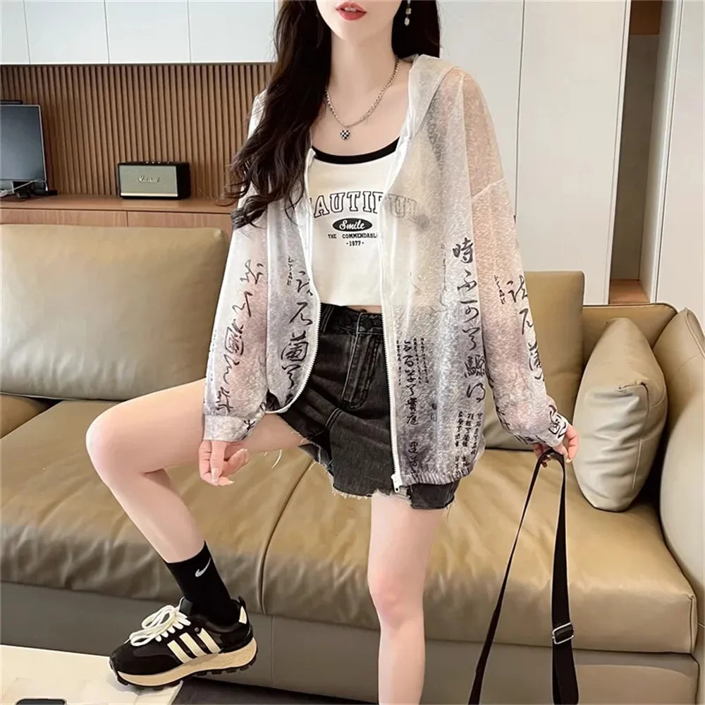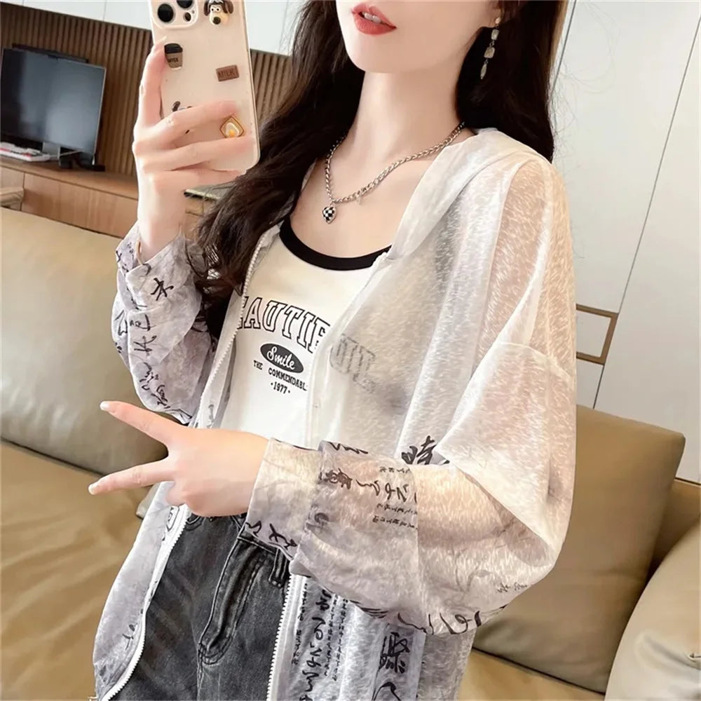 Womens UPF Sun Protection Jacket Ice Silk Hooded Cardigan Summer