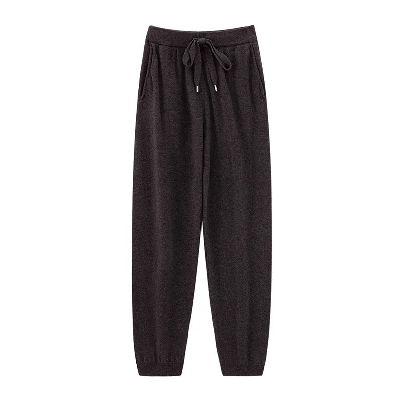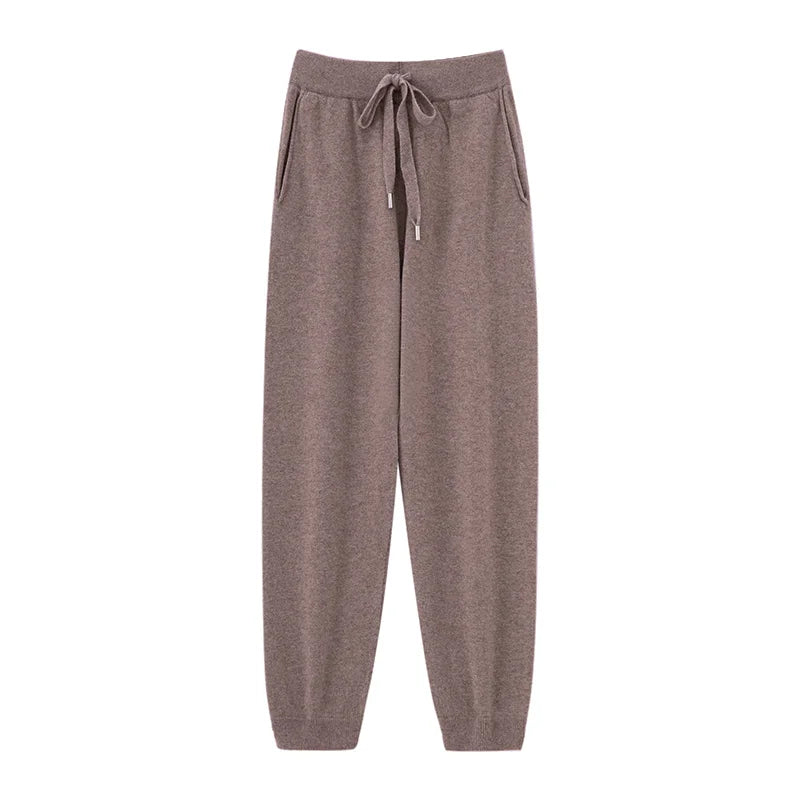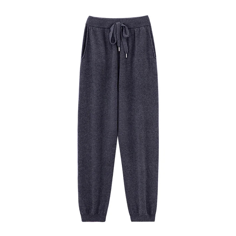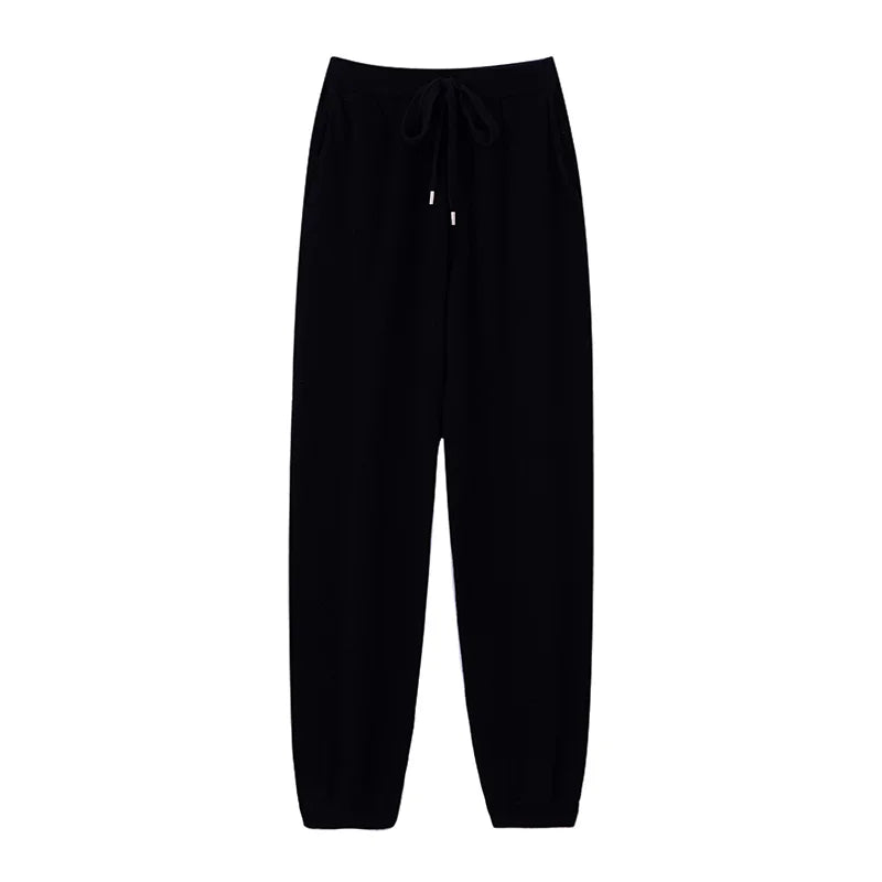 Womens Wool Jogger Pants High Waist Cashmere Knit Lounge