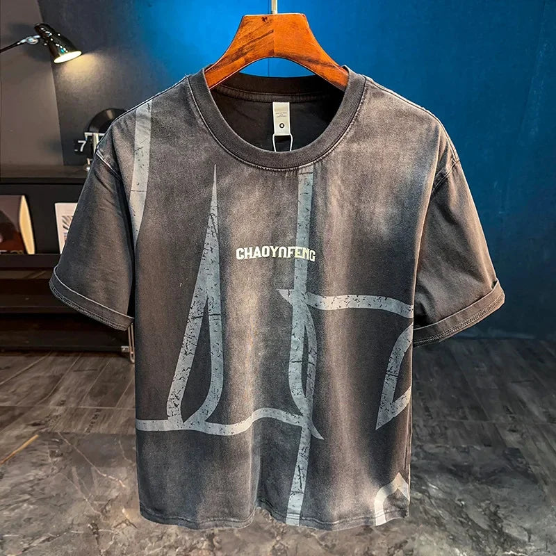 2026 Mens Ombre Washed Tshirt Retro Summer Casual Top