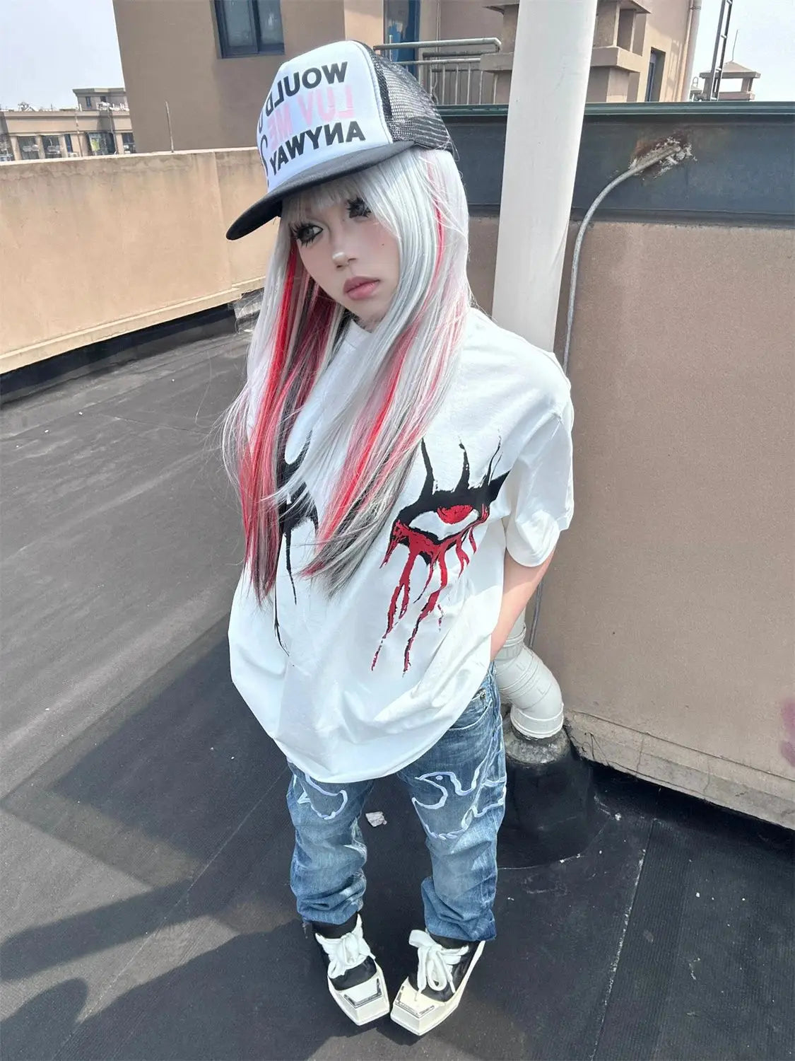 American Gothic Demon Eye Print Cotton T-Shirt