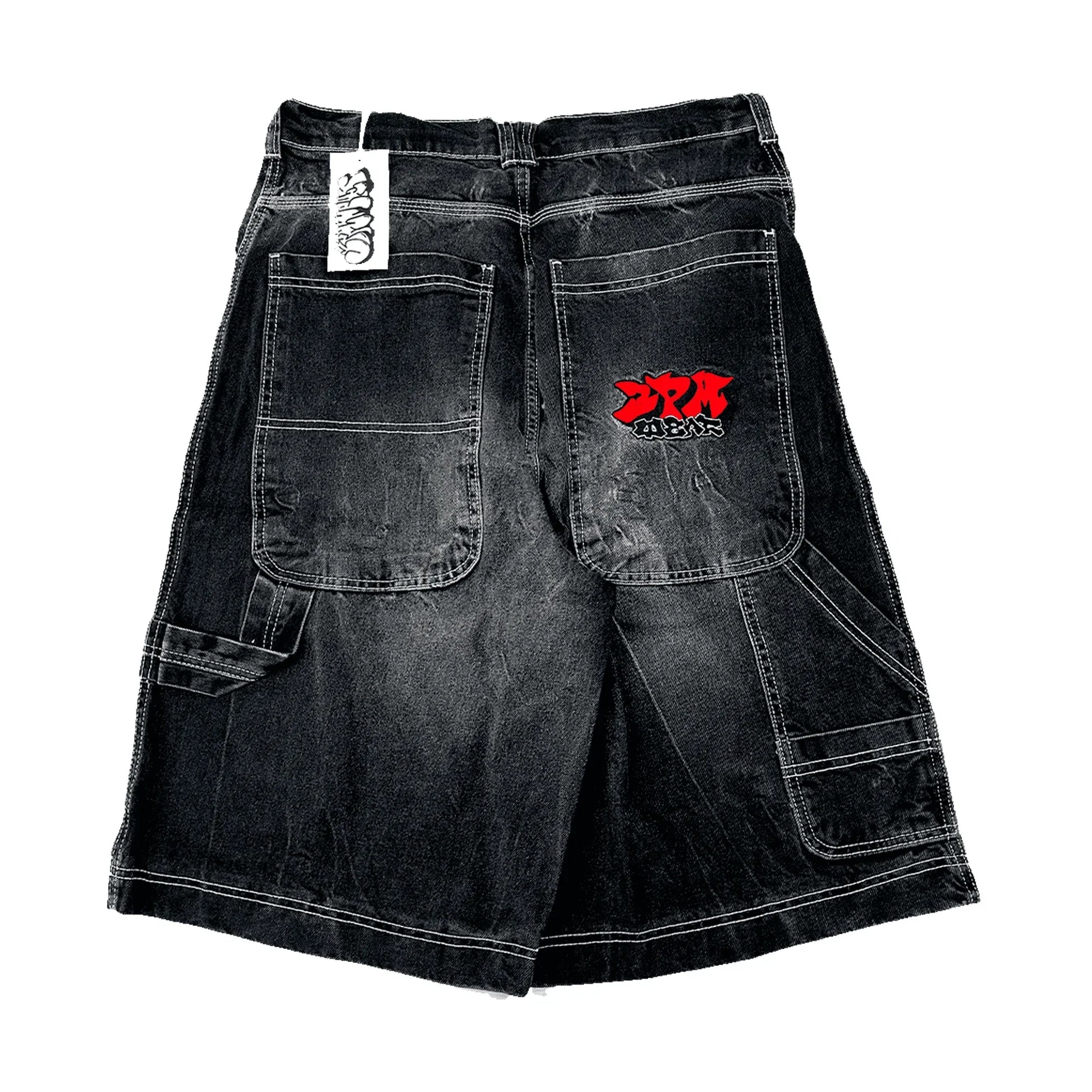American Hip-Hop Retro Embroidery Denim Shorts Men Y2K Gothic