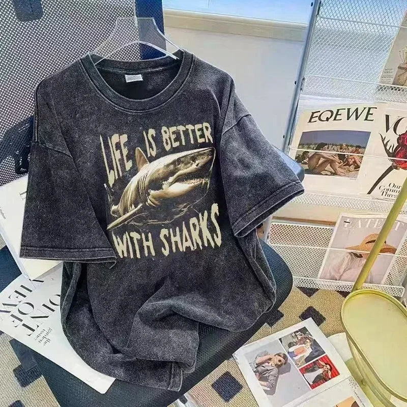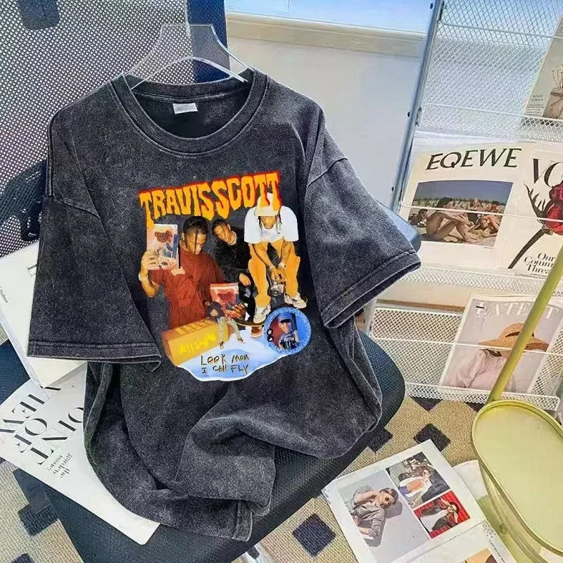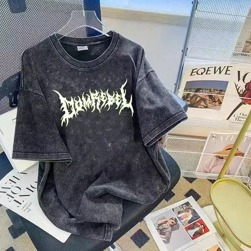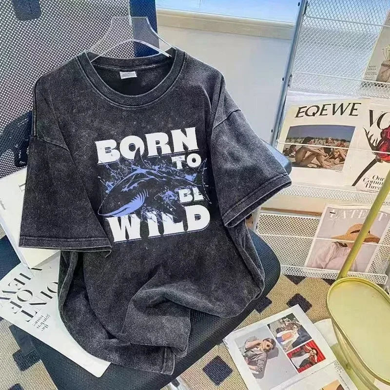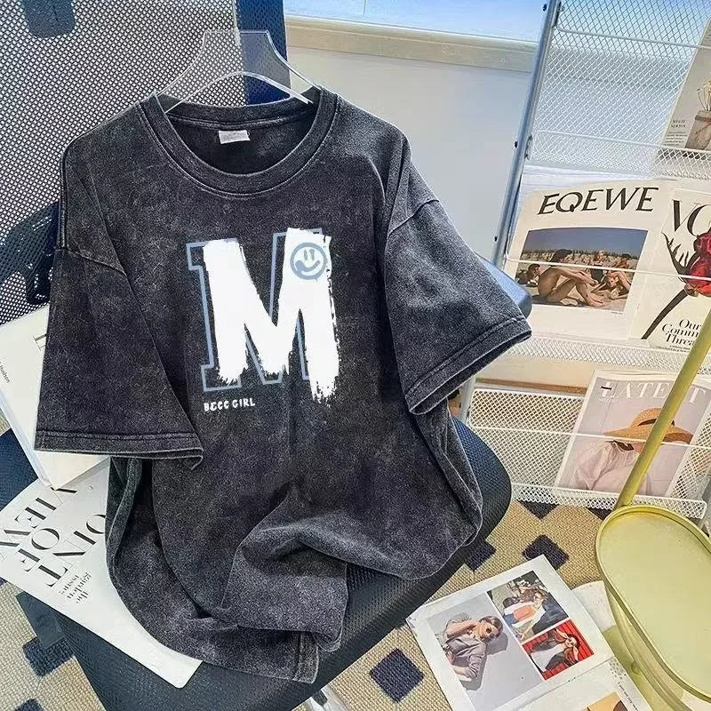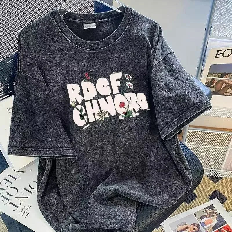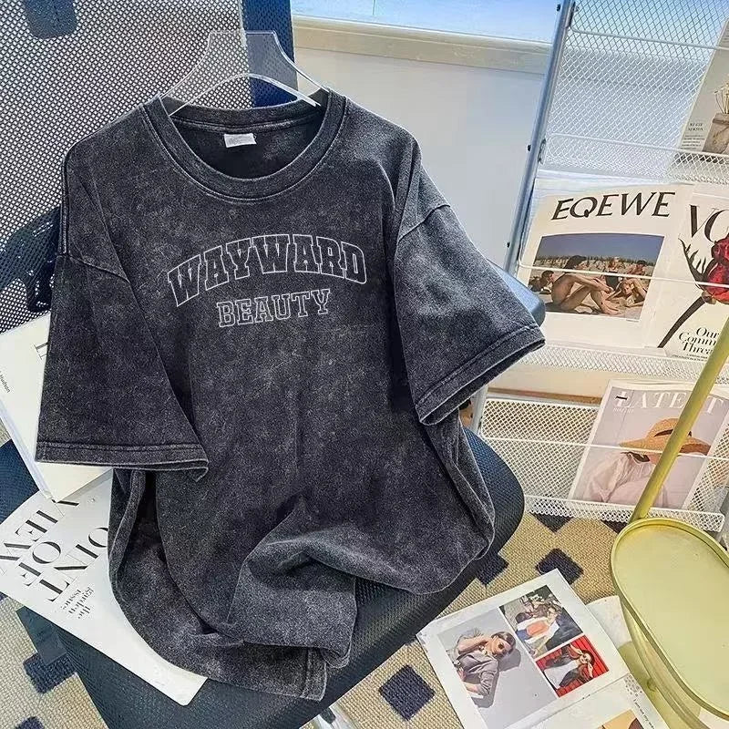American Retro Wash T-Shirt Men's Summer Loose High Street Fashion