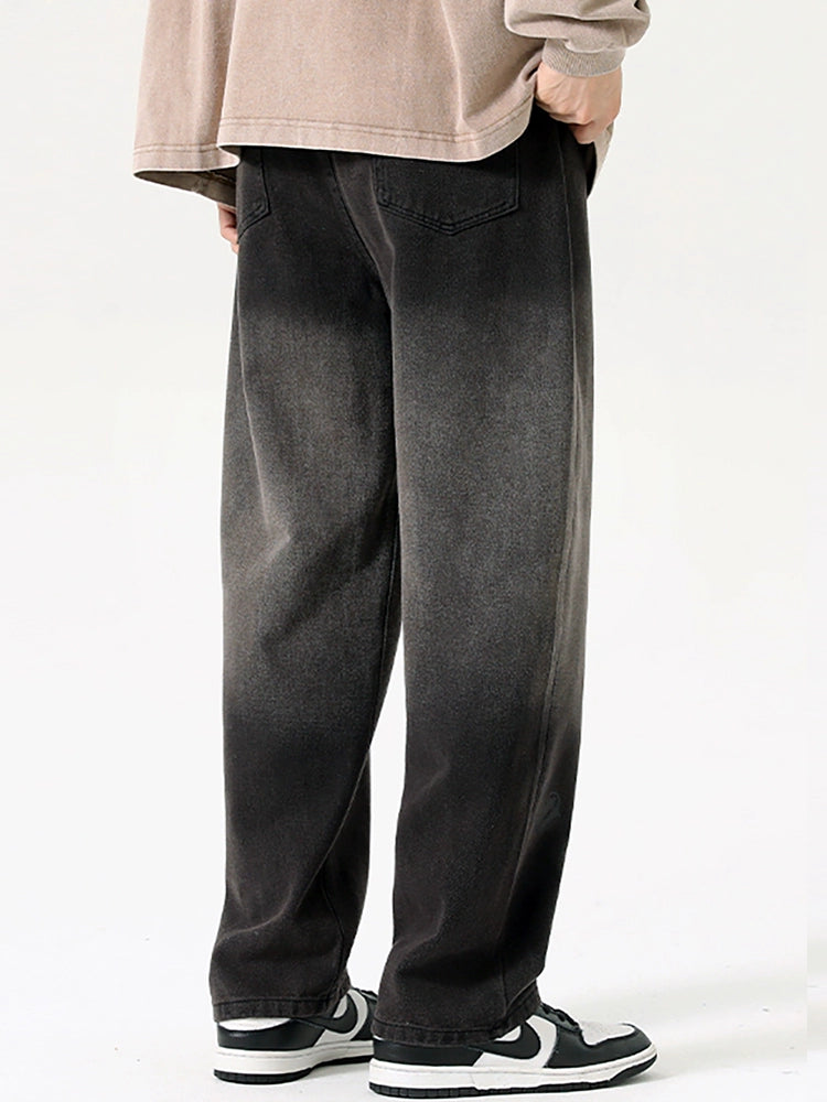 Autumn and Winter Simple Letters Print Distressed Washed Loose Straight