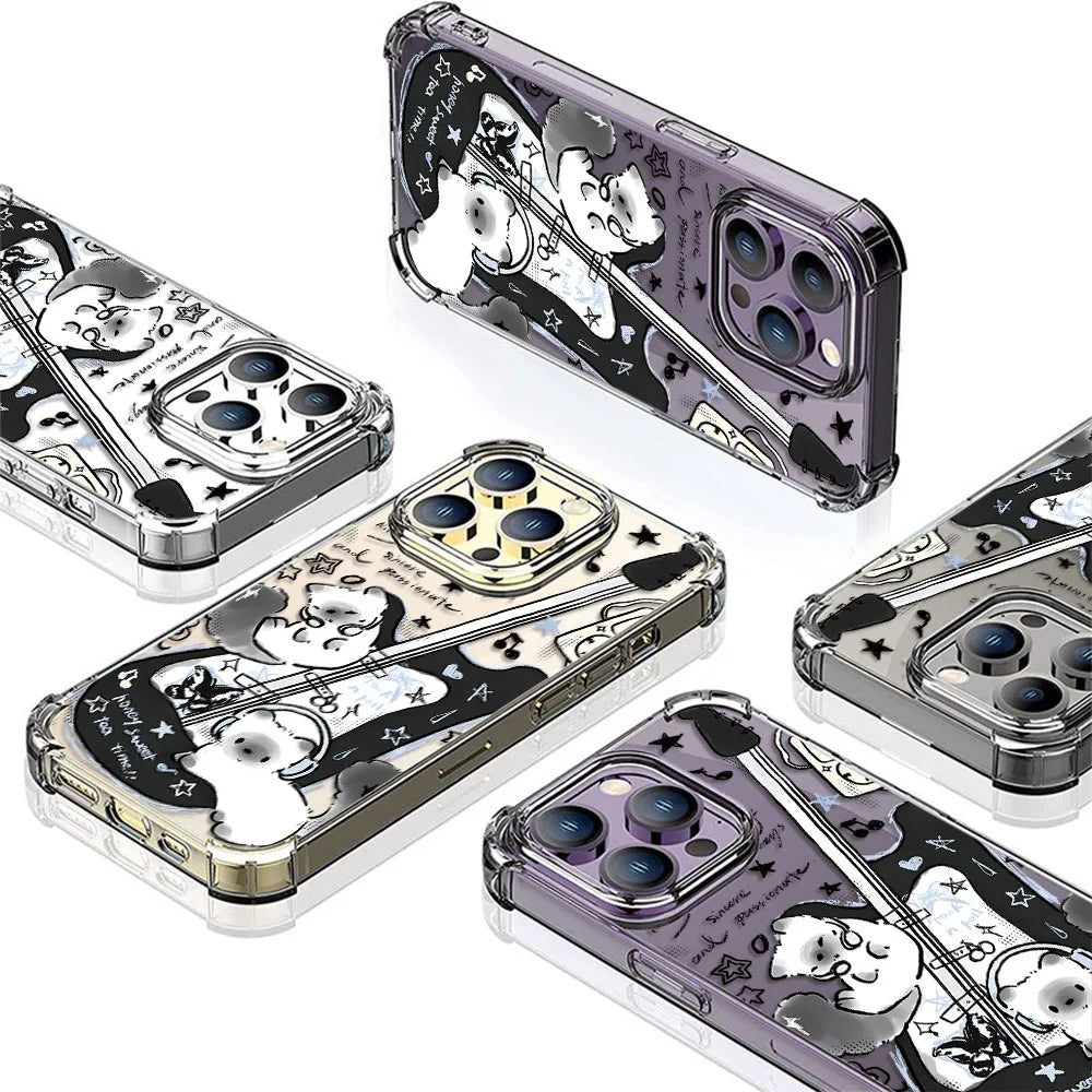 Black Guitar Music Cat Shockproof Phone Case For iPhone