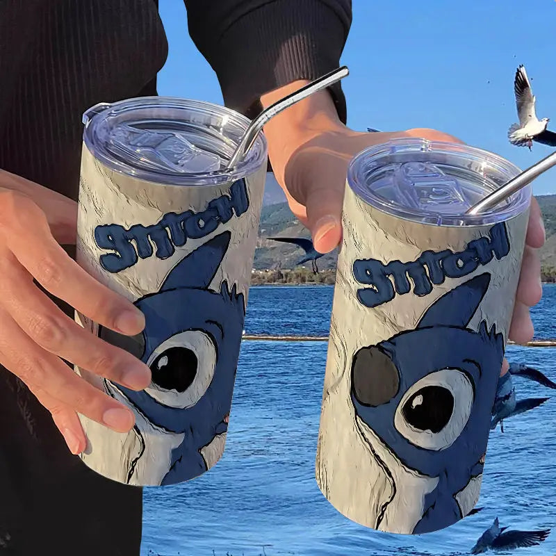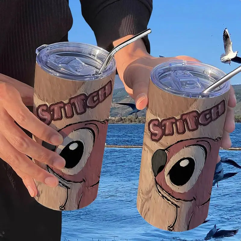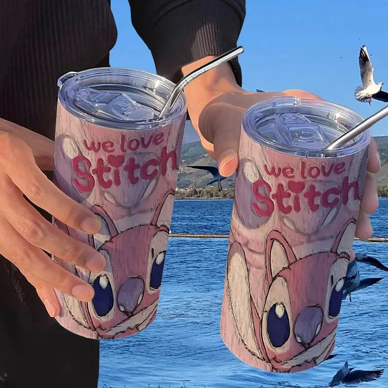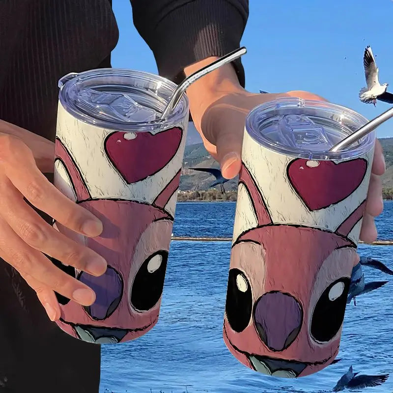 Disney Cartoon Anime Stitch 420ml Water Cup Angel Vacuum Cup