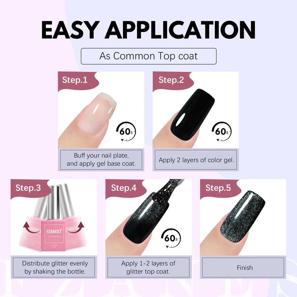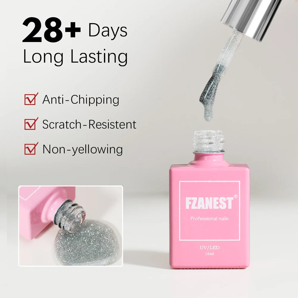 Flash Diamond Disco Gel Shimmer Silver Mix Glitter Top Coat