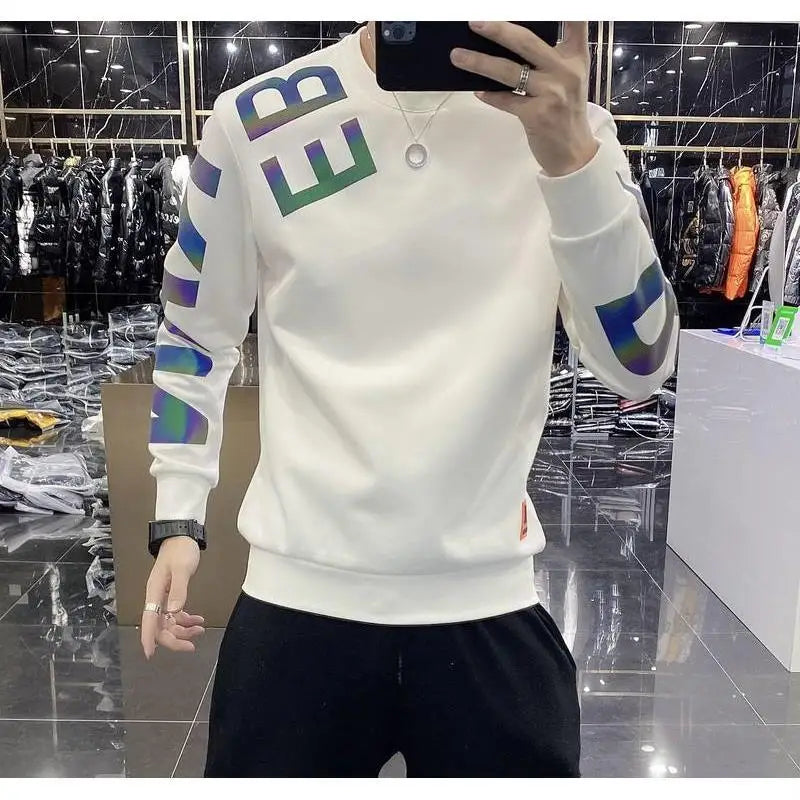 Flash Reflective Men Shirt Colorful Letter Print Urban Tee