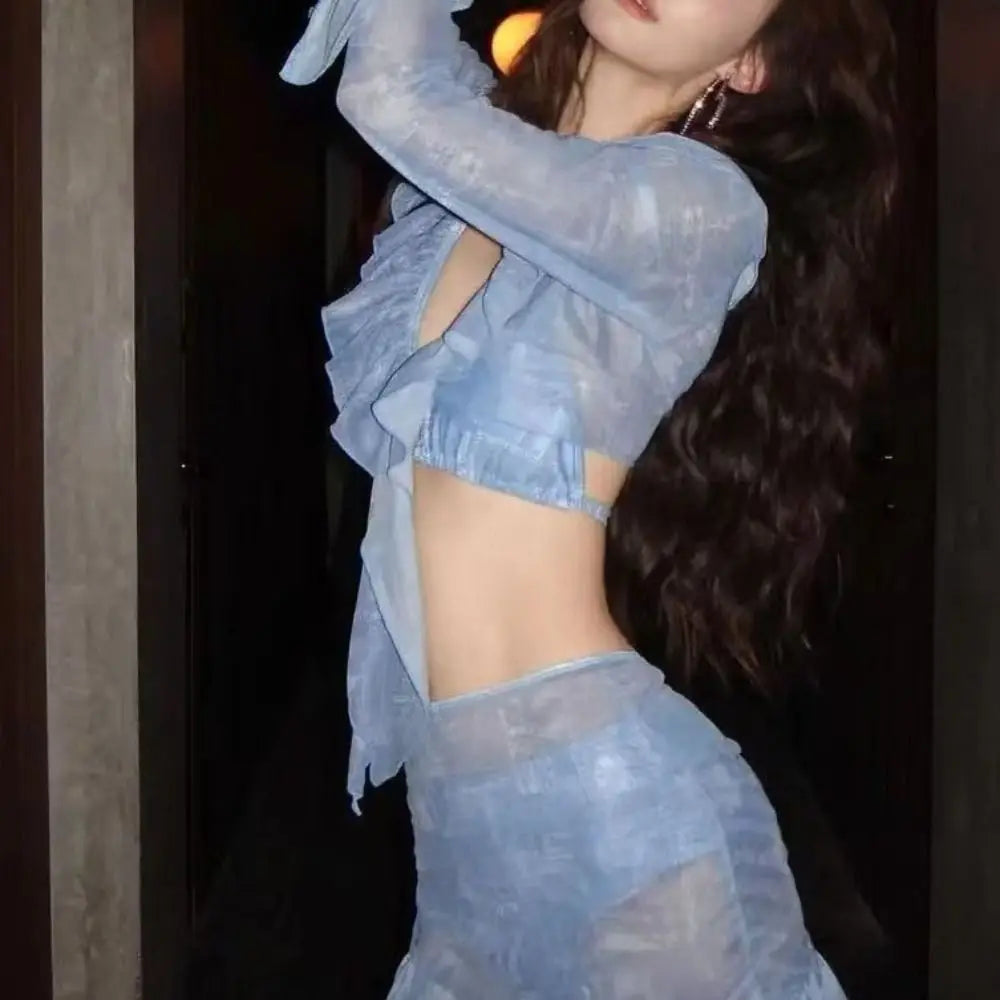 Four Piece Halter Bikini Long Sleeve Rash Guard Split Swimwear