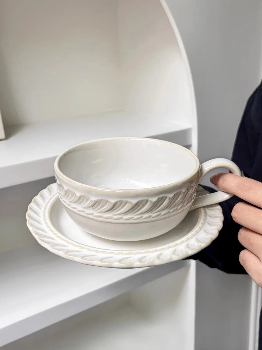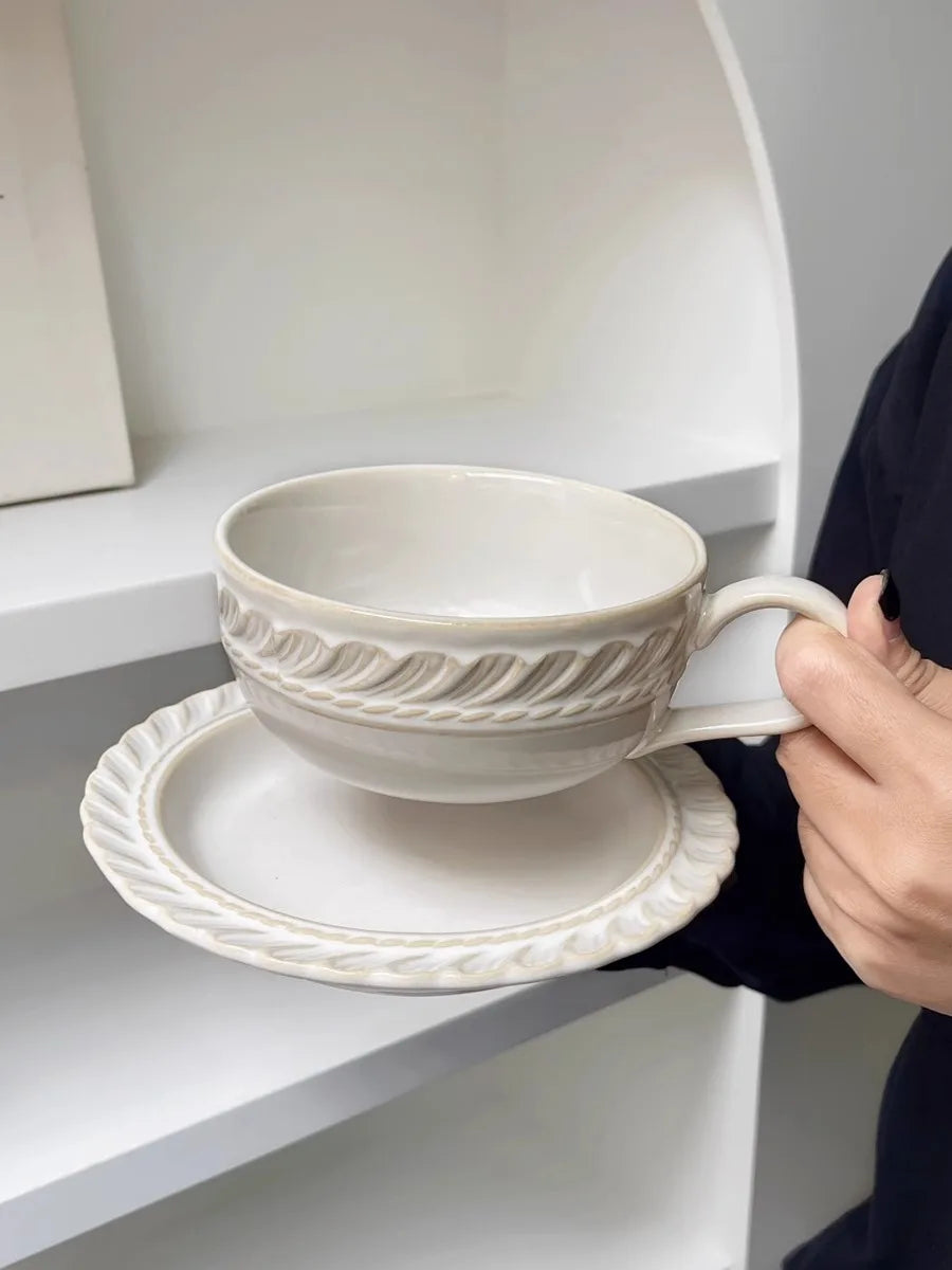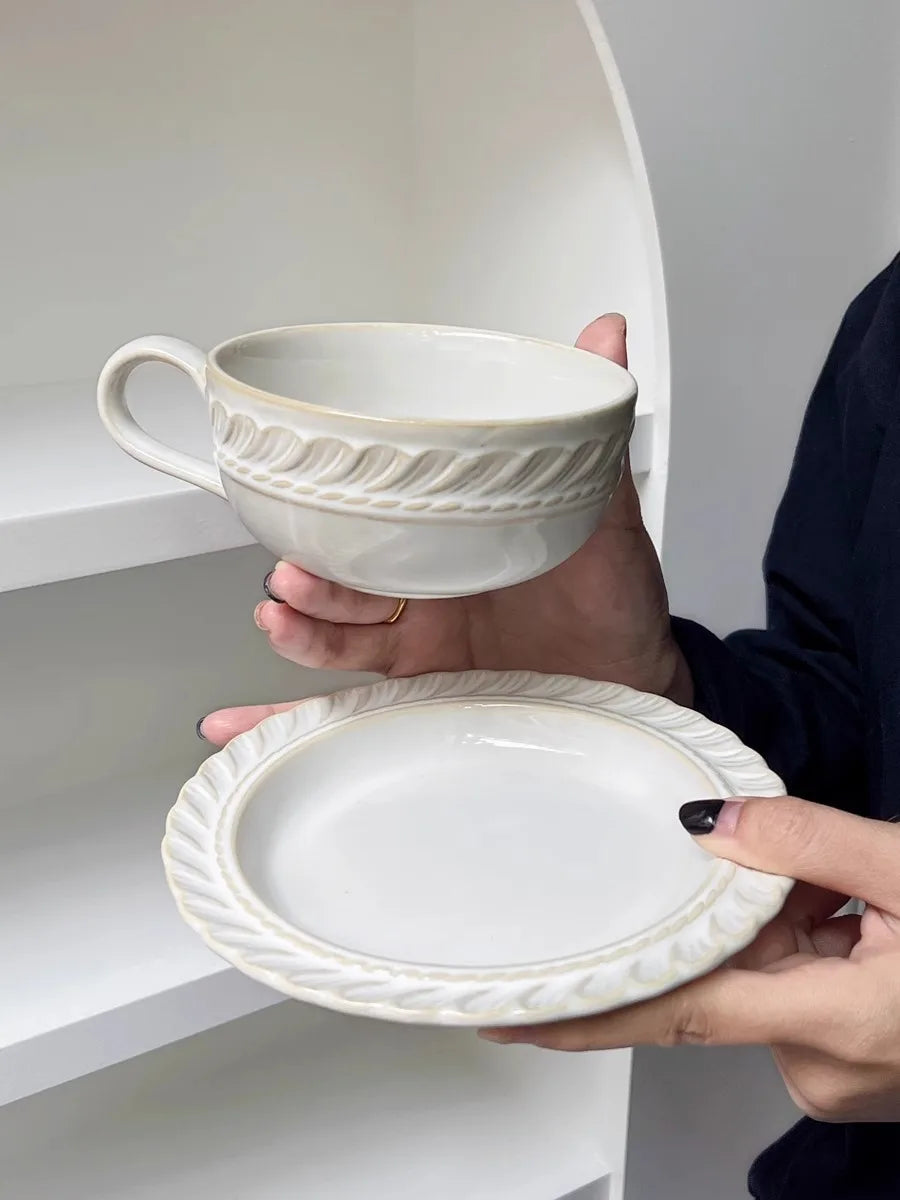 French Vintage Fragrant Song Elegant Ceramic Coffee Cup Plate Light Luxury Latte Flower