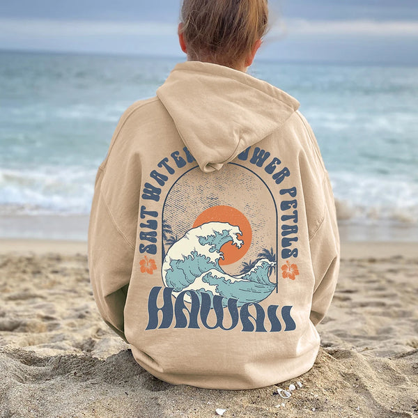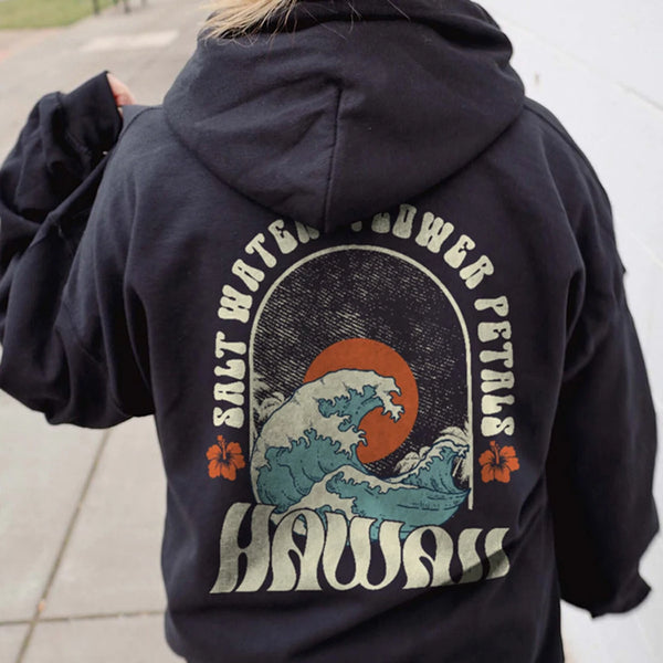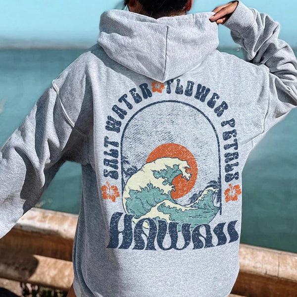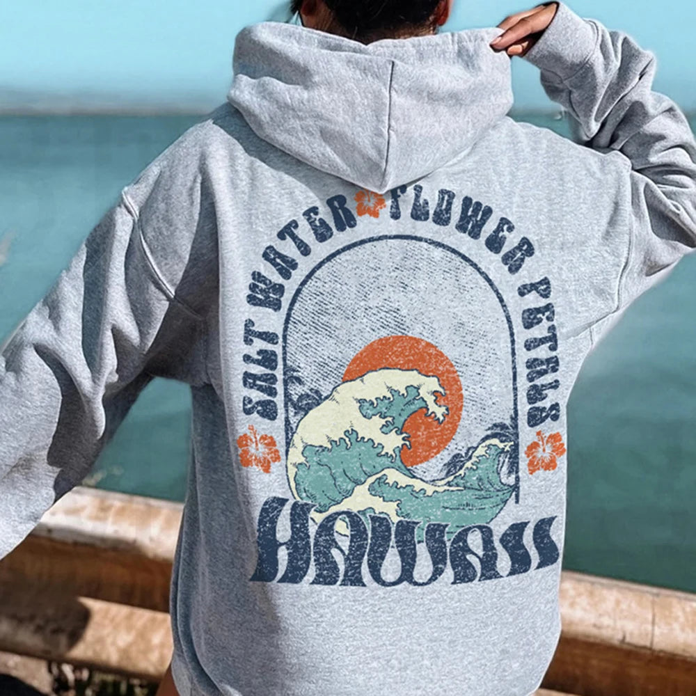 Hawaii Vintage Hoodies for Women Salt Water Flower Petals Print Trend