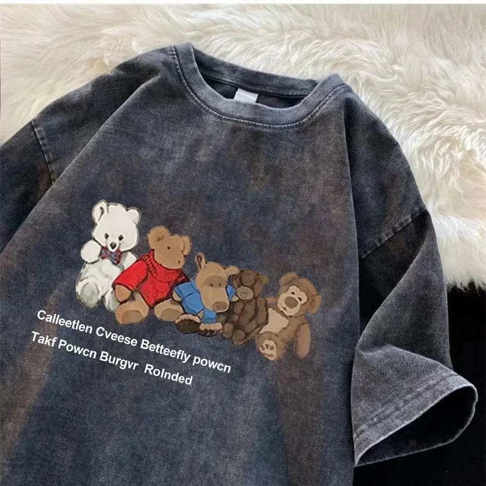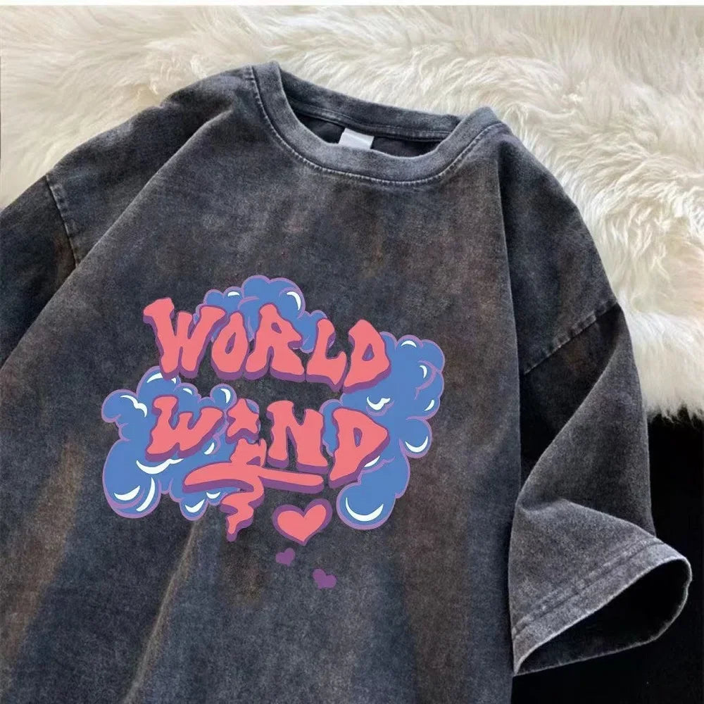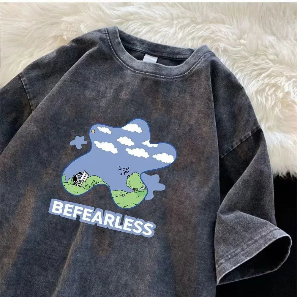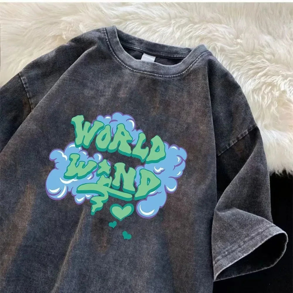 Men’s Retro Streetwear T-Shirt Vintage Washed Hip Hop Summer Tee