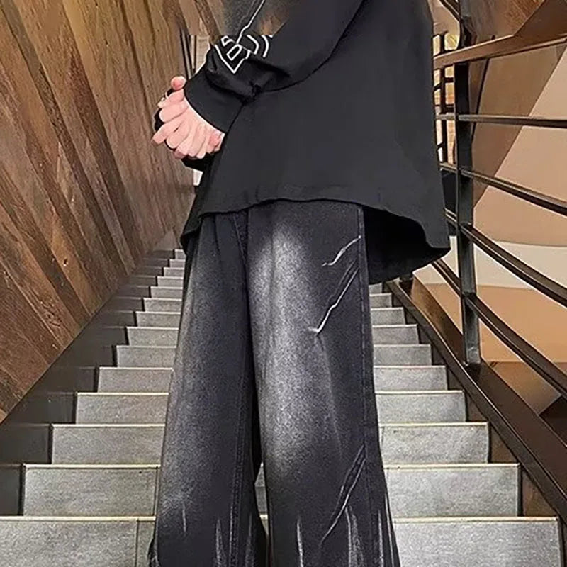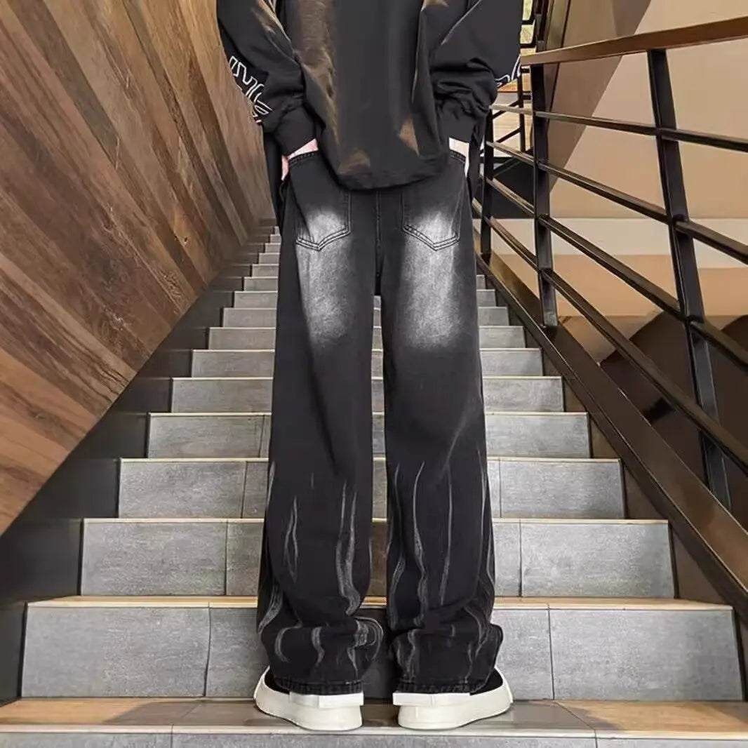 Mens Baggy Dye Denim Jeans Streetwear Loose Fit Pants
