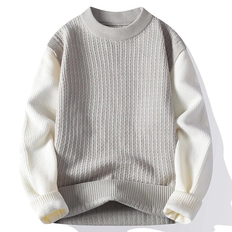 Mens Crew Neck Patchwork Sweater Long Sleeve Knit Pullover Casual
